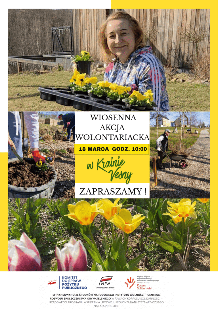 W Krainie Vesny mamy swoją siedzibę z częścią administracyjno-organizacyjną. Tu prowadzimy także Międzypokoleniowe Centrum Wolontariatu, w którym najliczniejszą grupę stanowią seniorzy angażujący się w powstawanie eko osady, a także w wolontariat dla przyrody na turystycznych szlakach.